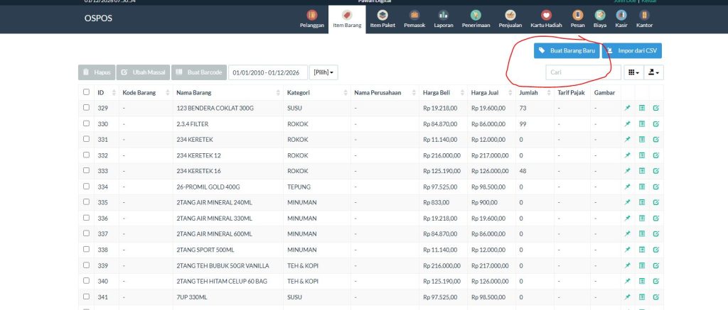 Tinggal Input barang Anda dan bisa Import Juga dalam CSV