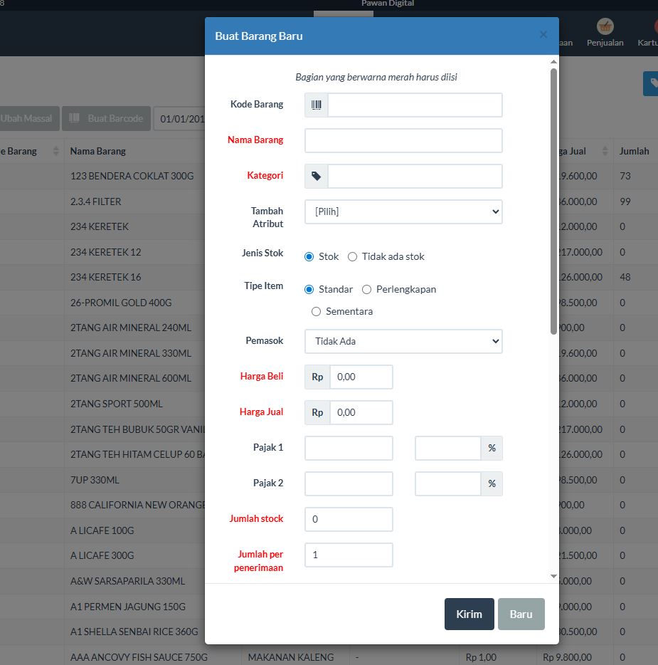 Cara untuk menabah barangnya pada aplikasi kasir kami sangat mudah